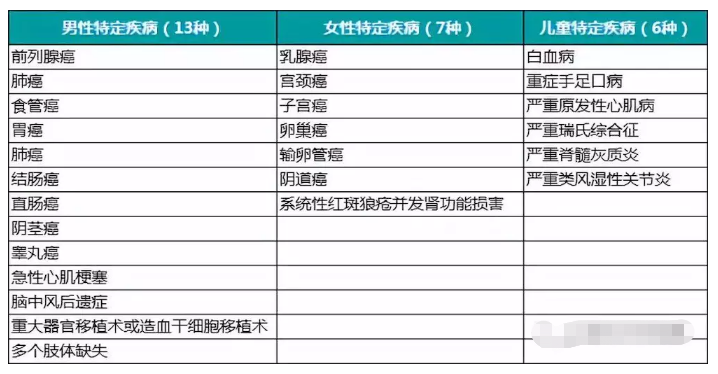4.新增的特定疾病保障:增加13種男性疾病、7女性疾病、6種兒童疾病,如果是特定疾病發(fā)生,額外賠付30%的保額,即假設(shè)500,000保額,如果體重發(fā)生疾病是特定的,賠付是650,000。