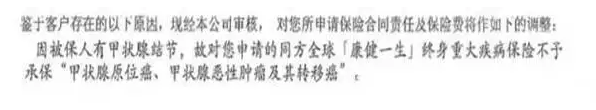與上述排除條款相比,此類保險(xiǎn)公司對除外承保的表述是“公司不承銷/除XX及其轉(zhuǎn)讓或再發(fā)的保險(xiǎn)責(zé)任”,粗心客戶可能找不到這句話的漏洞但仔細(xì)看,你會發(fā)現(xiàn)它沒有明確說明排除是否只是嚴(yán)重疾病的責(zé)任,而是使用保險(xiǎn)責(zé)任。但是,保險(xiǎn)責(zé)任一般包括輕癥責(zé)任,重大疾病責(zé)任和死亡責(zé)任(某些產(chǎn)品還包括終止責(zé)任、殘疾責(zé)任),因此當(dāng)您看到排除是保險(xiǎn)責(zé)任時(shí),十有八九也包括身故責(zé)任的除外。由上圖中的核保確定,經(jīng)過多保魚驗(yàn)證后,死亡責(zé)任也被排除在外。