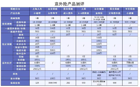 (優(yōu)秀的意外險有很多,一些沒有提到的意外險只是因為保障跟表格內(nèi)重復(fù)了,所以不再贅述,有興趣的朋友可以做進一步的了解)