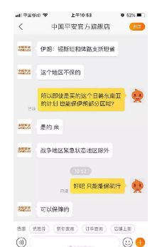 雖然一些境外旅游險(xiǎn)是會(huì)將部分戰(zhàn)亂地區(qū)除外,但楊女士已詢(xún)問(wèn)過(guò)平安客服,確定父母去的地區(qū)是在承保范圍內(nèi)的。
