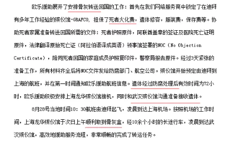 多保魚(yú)整理一下:“安排了骨灰轉(zhuǎn)送回國(guó)”“擔(dān)保了死者火化費(fèi)”,為什么后續(xù)還有“遺體經(jīng)過(guò)防腐處理”,“安排殯儀館接收遺體”,最后殯儀館“順利取到骨灰盒”。