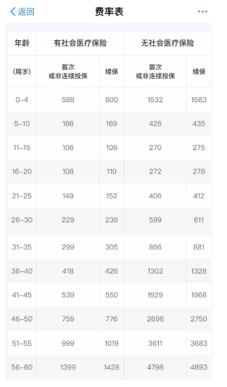 最后當然要落到保費上了,好醫(yī)保的費率表如下: