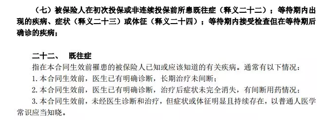 3、責任免除:既往癥