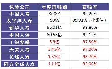 我們來(lái)看幾個(gè)保險(xiǎn)公司發(fā)布的理賠率:消費(fèi)者申請(qǐng)理賠后,保險(xiǎn)公司理賠的概率有多少。