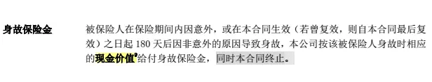達(dá)爾文1號對于身故保障是給付保單的現(xiàn)金價值。