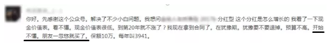 業(yè)務員:誰家賺點錢都不容易,買個保險沒生病錢不就白花了么?!這款產(chǎn)品的分紅很可觀,來我給你算一下看看……