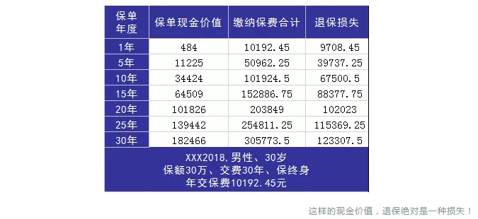 但是現(xiàn)在市面上大部分的重疾險,現(xiàn)金價值是遠低于已交保費的。比如這位朋友被推銷的,某熱銷產(chǎn)品XXX2018,其現(xiàn)金價值表如下圖