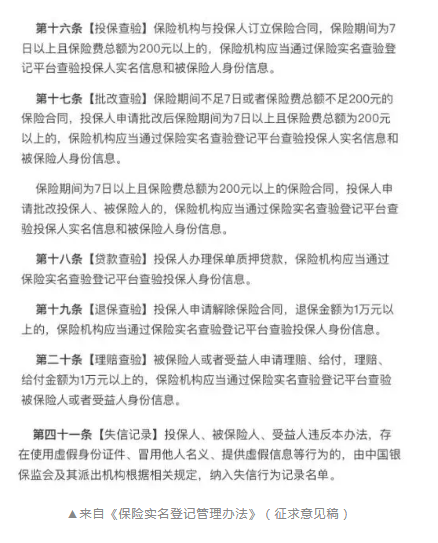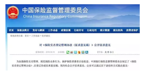 今年的6月4號,銀保監(jiān)會發(fā)布了《保險實名登記管理辦法》的征求意見稿。