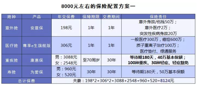 2)8000元左右,我們可以有兩種選擇,一是盡可能做高大人的保額,使保障更全面;另一種就是在保障了大人的基礎(chǔ)上,將剩下的預算給孩子買保險。
