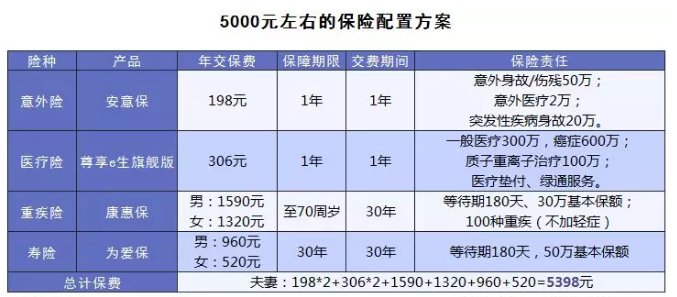 3)5000元左右我們先只考慮給大人買保險,最大程度規(guī)避風險。