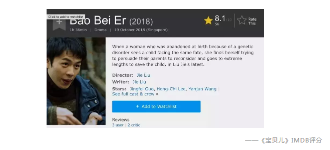 而在國外,這部影片入多倫多電影節(jié)“特別展映”單元,在IMDB的評(píng)分卻達(dá)到了8.1分(《我不是藥神》不過也只有8.2分)