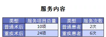 重疾綠通:遠(yuǎn)程問(wèn)診、專家門(mén)診、住院安排、手術(shù)安排、住院探視、醫(yī)后隨訪、中醫(yī)理療、營(yíng)養(yǎng)方案、專家復(fù)診。