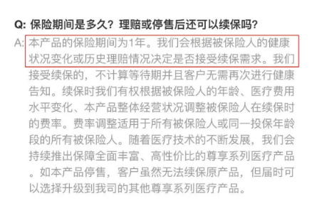在尊享e生爸媽版投保頁(yè)面的常見(jiàn)問(wèn)題中,關(guān)于續(xù)保,官方有如下答復(fù):