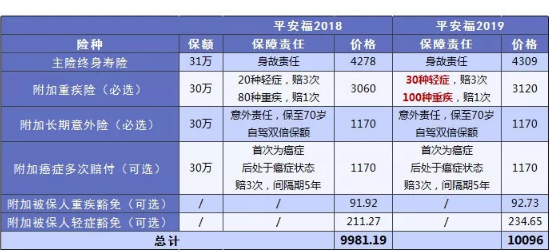好在,它的保費也沒有增加太多,所以如果是喜歡平安福的朋友,確實2019要比2018好一些。