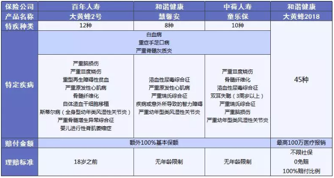 和諧健康的大黃蜂2018的少兒特疾不會額外賠付,所以價格偏低。