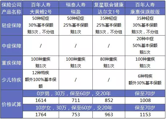 我們來做一個詳細的少兒特疾分析。包含以下幾款產(chǎn)品: