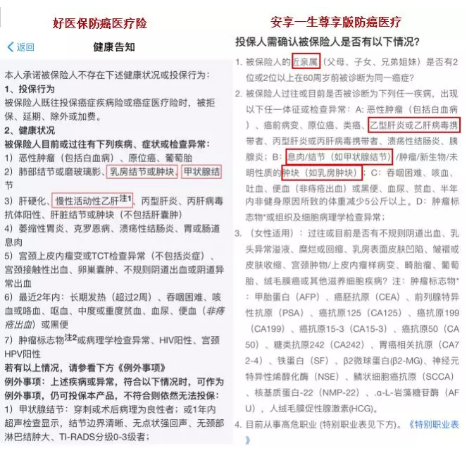 而安享一生就嚴(yán)格很多,對以上常見疾病都是拒保的,而且還涉及了家族病史的詢問。