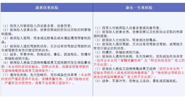 綜上,康惠保重疾險(xiǎn)的責(zé)任免除要優(yōu)于康樂一生重疾險(xiǎn)。