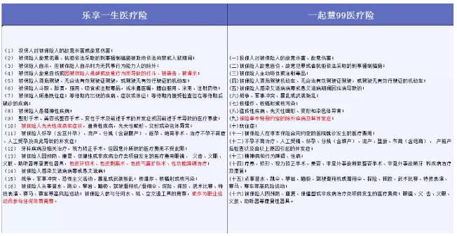 綜上,在責(zé)任免除方面,一起慧99醫(yī)療險(xiǎn)比樂享一生醫(yī)療險(xiǎn)略有優(yōu)勢(shì)。