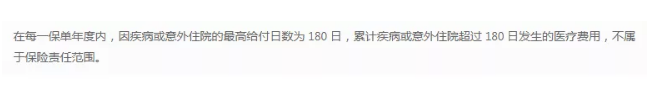 1年有365天,條款里只注明報(bào)銷180天,反過來說,剩下185天的醫(yī)療住院費(fèi)用就不在報(bào)銷范圍內(nèi)了。