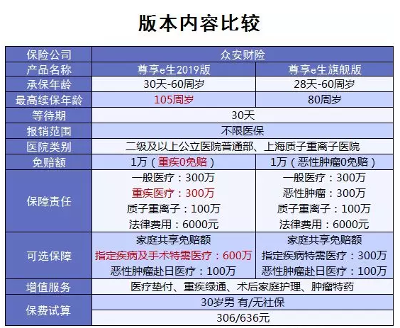 價格上,升級后的尊享e生2019版與旗艦版持平,甚至超值保障還在部分特定年齡降低了保費。