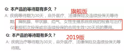 在常見問答中,升級后的2019版不再對扁桃體、甲狀腺、疝氣、女性生殖系統(tǒng)疾病的檢查與治療設(shè)定理賠時間限制。
