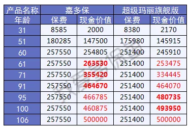 現(xiàn)金價(jià)值高:這款的現(xiàn)價(jià)也很可觀,同樣在61歲的時(shí)候現(xiàn)價(jià)已經(jīng)很客觀了。
