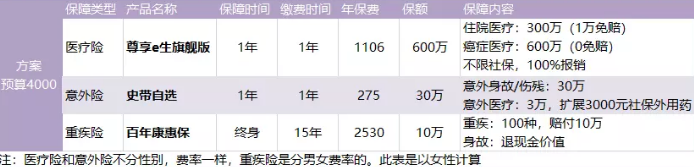 保費(fèi)在4000以?xún)?nèi),你可以獲得以下保障: