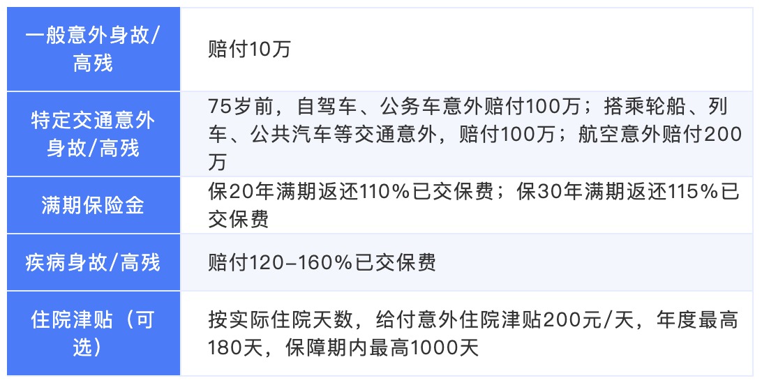 另外意外險(xiǎn)相比其它險(xiǎn)種很大一個(gè)優(yōu)勢(shì)在于殘疾是按等級(jí)分比例進(jìn)行賠付的,例如2級(jí)殘疾賠付保額的90%,并不是要求全殘才能賠。所以挑選產(chǎn)品的時(shí)候要看一般意外責(zé)任的保額要盡量高,而不要被航空保額300萬,郵輪保額300萬這種低賠付率的責(zé)任吸引了眼球。