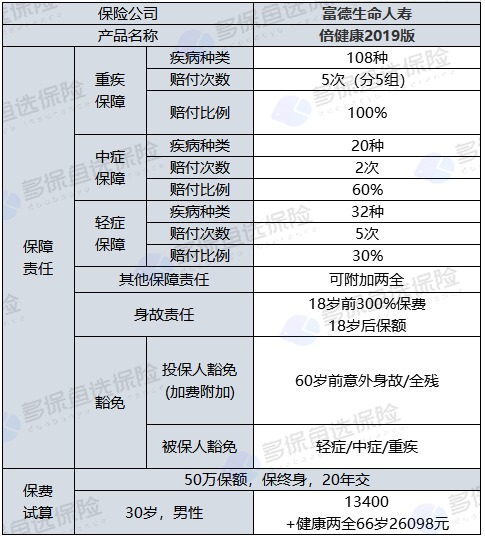- 富德生命倍健康2019與其他重疾險(xiǎn)對比