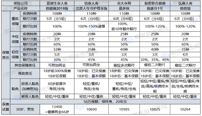 富德生命倍健康2019與其他重疾險(xiǎn)對比