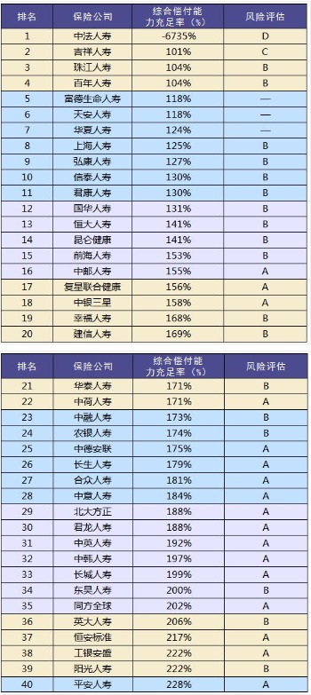 保險(xiǎn)公司的風(fēng)險(xiǎn)評(píng)級(jí)是保監(jiān)會(huì)綜合保險(xiǎn)公司的各項(xiàng)指標(biāo)綜合得出。