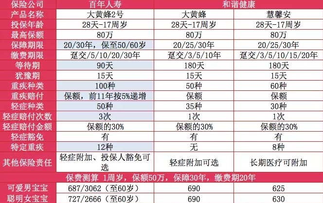 這款號稱可以“抗通脹”的保險是大黃蜂的升級版本,大黃蜂第1號和中荷童樂保、和諧慧馨安一起,堪稱兒童消費型重疾的三好學生。讓我們看一下有什么不同之處。