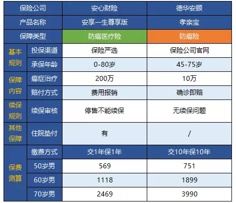 我還選擇了兩個(gè)以前推薦的防癌險(xiǎn)、防癌醫(yī)療保險(xiǎn)作比較,你可以直觀地看一下: