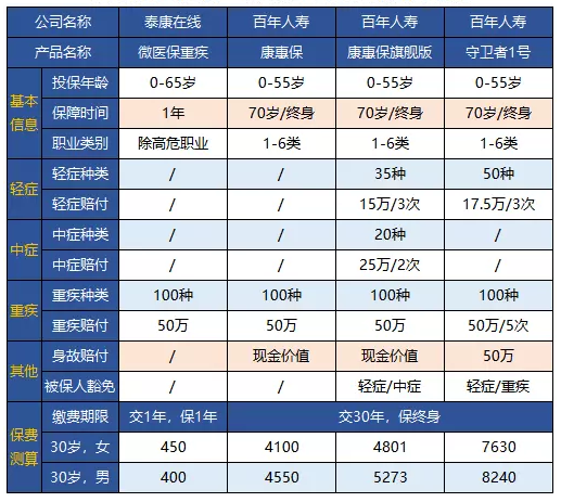 微醫(yī)保重疾是一年產(chǎn)品,百年的三個產(chǎn)品可以是保障終身,這是幾個產(chǎn)品之間的第二大差異。
