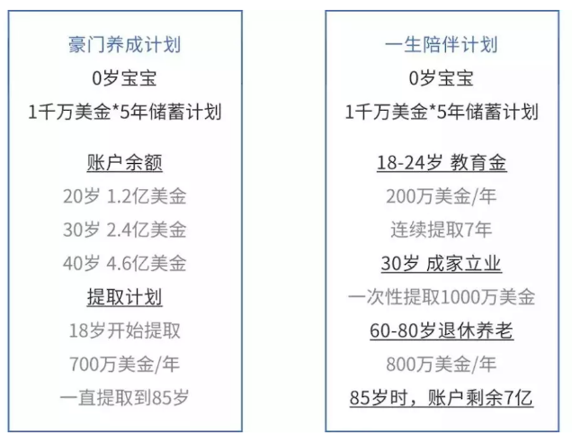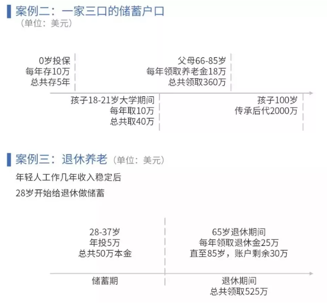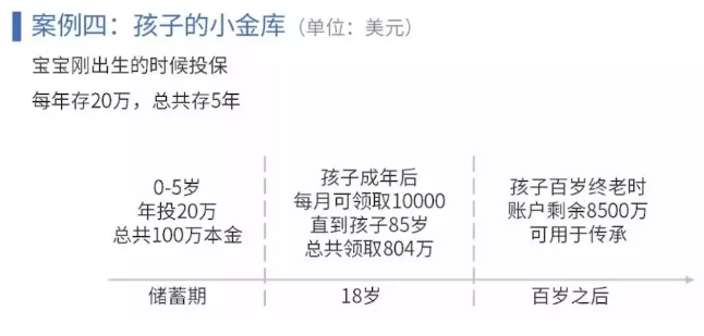 當(dāng)然,此類產(chǎn)品不僅是高凈值家庭的專利,香港保險(xiǎn)是海外資產(chǎn)投資的門檻較低,投資門檻不高,適合廣大中產(chǎn)家庭安排自己的長(zhǎng)期儲(chǔ)蓄計(jì)劃:(一大波例子正在路上)