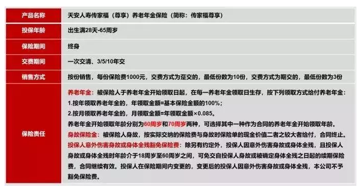 天安人壽傳家福(尊享版)養(yǎng)老年金保險測評