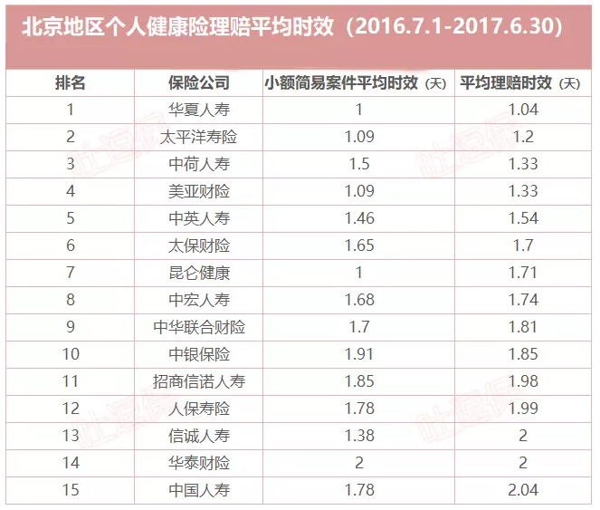 你可以看看,16?17年北京區(qū)域健康保險平均值為理賠時效: