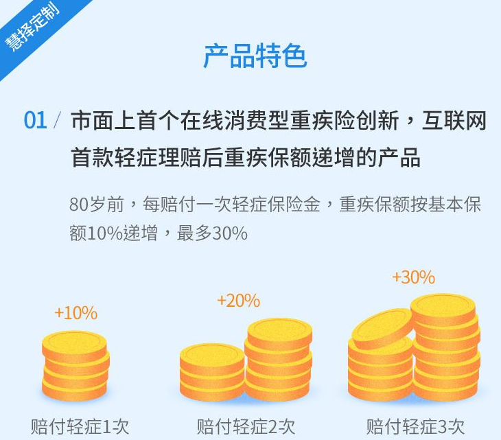 1.重大疾病保險保額將增長到輕癥賠付后,重大疾病保險金額可以增加到130%(每次增加10%,最多上浮3次)