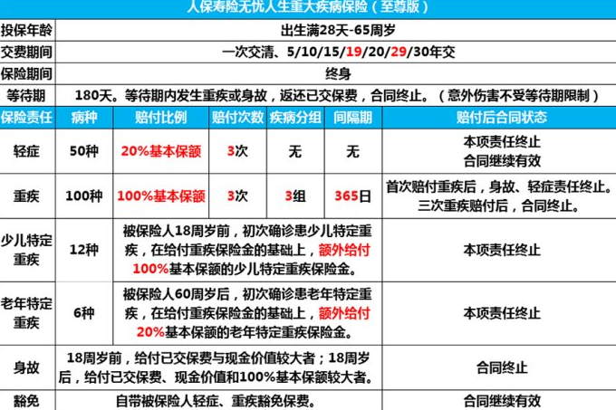人保壽險的無憂人生重疾險(至尊版)好不好