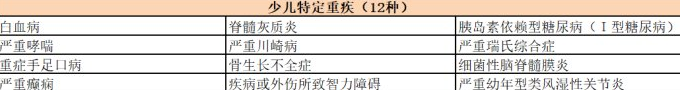 兒童特定的嚴(yán)重疾?。涸诒槐kU人年滿18周歲之前,第一次被診斷出患有特定的嚴(yán)重疾?。?2種類型)。在支付重大疾病保險費的基礎(chǔ)上,額外給付保險費為100%。
