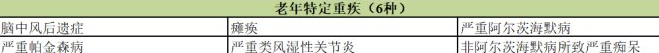 老年特定嚴(yán)重疾?。罕槐kU人年滿60周歲后,首次被診斷出患有特定嚴(yán)重疾?。?種類型)。在支付重大疾病保險費的基礎(chǔ)上,額外給付保險費為20%。