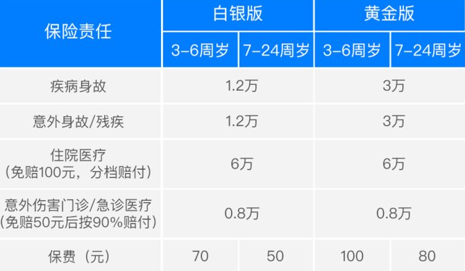 首先,保障年齡廣,3-24歲,涵蓋意外的急診費(fèi)用,意外及疾病住院醫(yī)療額度達(dá)6萬(wàn)元。