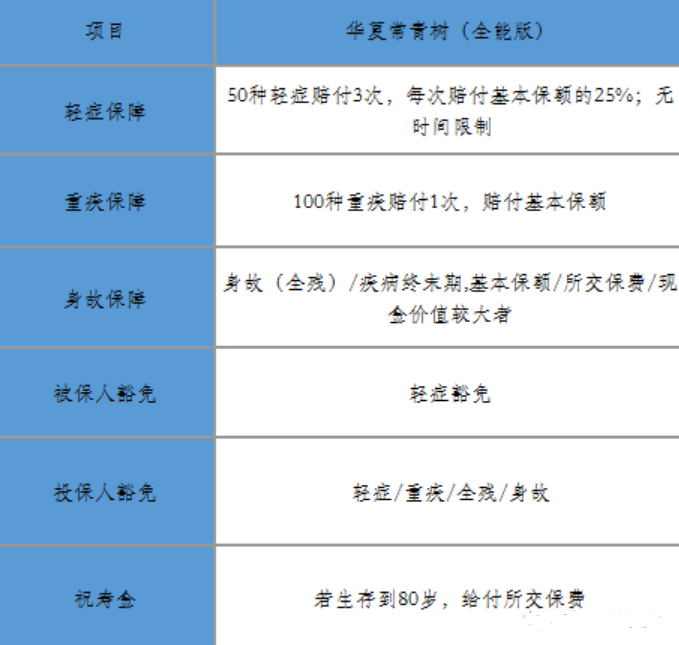 華夏常青樹有祝壽金的概念,祝壽金只有80歲才有,沒有生存到80歲是沒有的,這是要被記住的。根據(jù)目前76歲的平均壽命,一半的人應(yīng)該得不到這個(gè)返回保險(xiǎn)費(fèi)用。