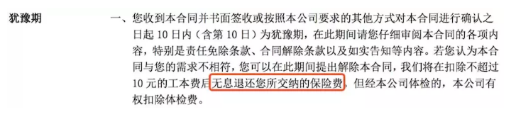 簡(jiǎn)單地說,在購買保險(xiǎn)后的10天內(nèi),如果您認(rèn)為您購買錯(cuò)了、后悔了、與代理商描述的不一樣;你可以在猶豫期內(nèi)隨時(shí)申請(qǐng)退保,保險(xiǎn)費(fèi)用完全撤退!如果您在線下購買,可能會(huì)扣除10元的費(fèi)用。如果猶豫期結(jié)束,即使被保險(xiǎn)人違約,損失也會(huì)相對(duì)較大。