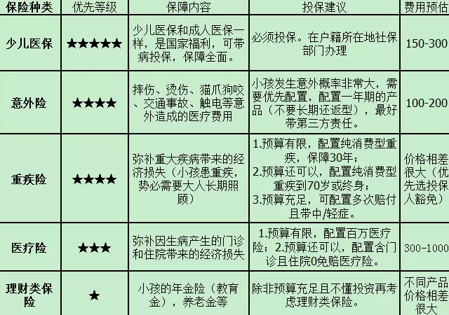 二:在家庭成員中,大人都是支柱,保費必須先滿足大人,對于孩子,意外險、重大疾病保險、醫(yī)療保險是必須的。