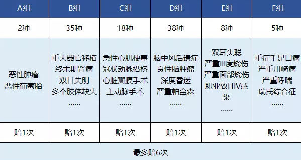 還有另一種類型的多次賠付重大疾病保險(xiǎn),也就是說,疾病沒有分組。也就是說,近100種疾病沒有分組,在完成賠付后,可以滿足一定條件,其余疾病還可以賠付。