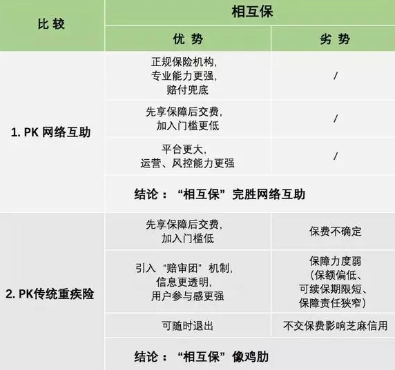 現(xiàn)在的支付寶“相互保”一推出就火的不行,多保魚身邊人的人也都在投保,還拉上家里的人,那真的有這么好嗎?有人問,這個和網(wǎng)絡互助、傳統(tǒng)重疾險有什么區(qū)別。其實相互保還是占有比較明顯的優(yōu)勢的,但是和傳統(tǒng)相比還是有點差距的。