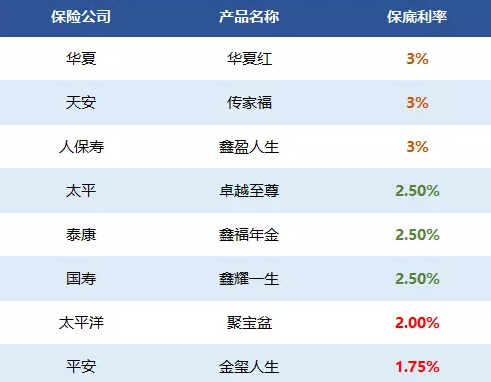 我們通過(guò)近幾年的幾種產(chǎn)品來(lái)看待保底利率的差異: