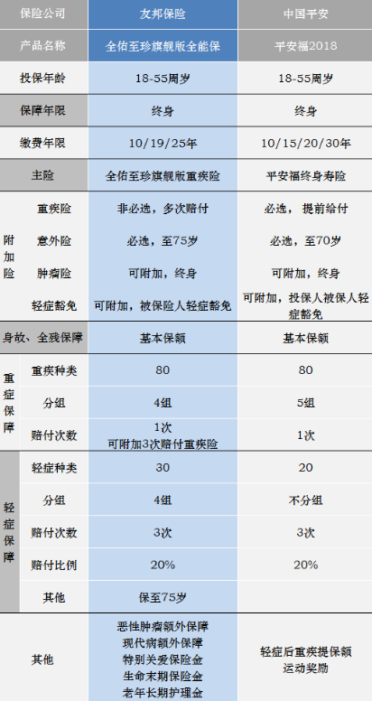 ?全佑至珍有10種類(lèi)型的輕癥保障多于平安福和賠付組,兩者都可以達(dá)到賠付3次。兩種型號(hào)都有輕癥豁免,全佑至珍可以連接到被保險(xiǎn)人輕癥豁免,而平安福可以連接到投保人、被保險(xiǎn)人輕癥豁免。